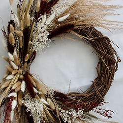 In this hands-on workshop, you'll create a beautiful dried fall wreath on a natural grapevine base using curated materials like pampas grass, bunny tails, preserved foliage, and warm autumn textures.